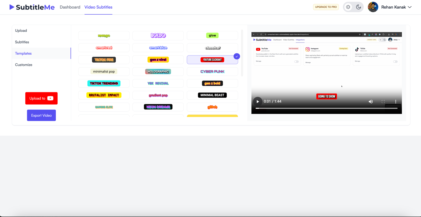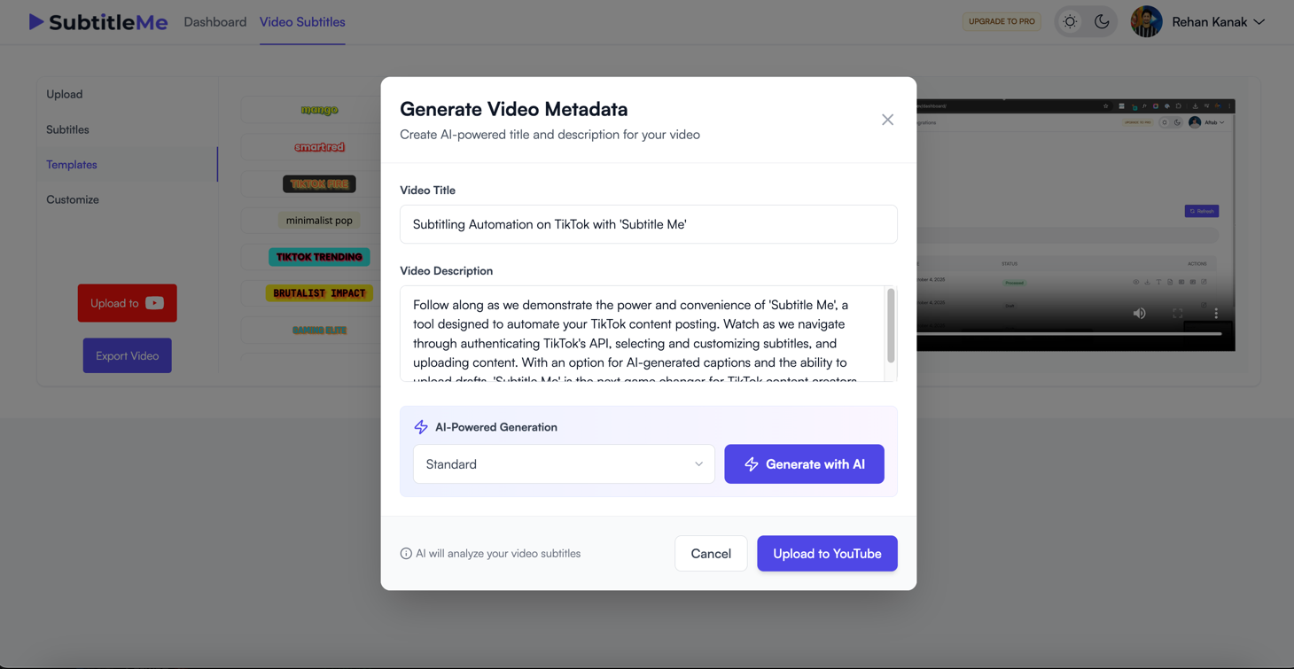SubtitleMe.ai now lets you create viral AI-generated subtitles and upload your videos directly to YouTube — no switching apps, no copy-pasting, just fast and seamless video posting.