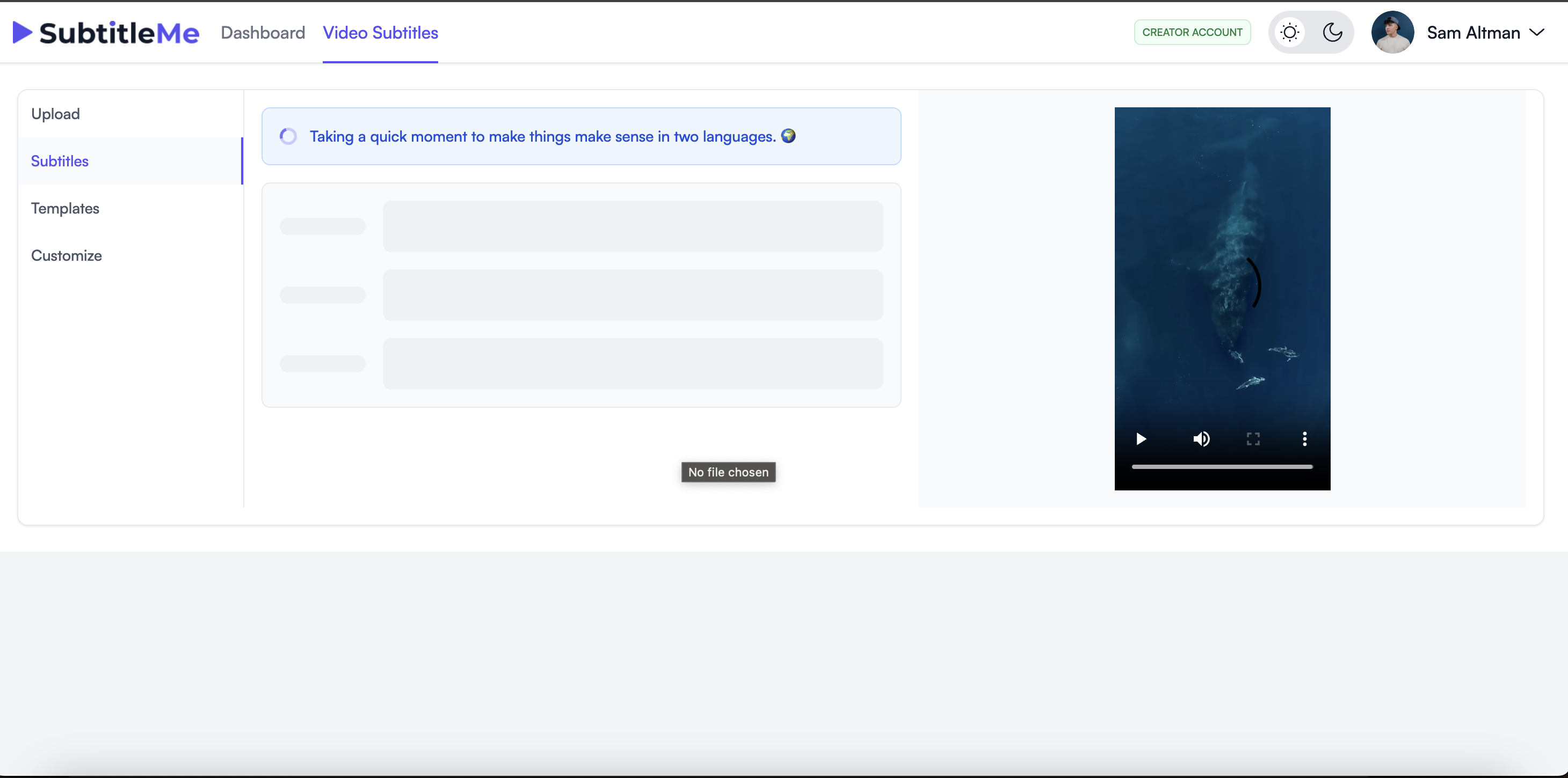 Creating subtitles for your videos has never been easier. Our advanced AI video subtitle generator understands language nuances and converts your spoken words into perfectly timed, accurate subtitles in seconds. Whether you're creating content for YouTube, TikTok, Instagram, or any other platform, our free video subtitle generator AI makes your content accessible to global audiences in 98+ languages.